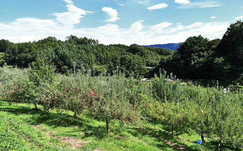 須田農園が信州佐久穂でりんご、プルーンの栽培を始めてから50年。この地の果樹農家は、お正月が明けると早速酷寒の中で枝の剪定を始めます。リンゴやプルーンは5月には白い花をつけ、やがて実がなり始めます。成長した実は、摘果といって少量のみを残し摘んでしまいます。全て手作業でおこなうため、栽培には膨大な手間と技術、経験を要します。有機肥料を主体に減農薬で栽培し、「須田さんの果物はおいしいね」、がいつも励みになります。両親、私たち夫婦、子供達、 お手伝いいただくご近所の方々、笑顔いっぱいの農園です。